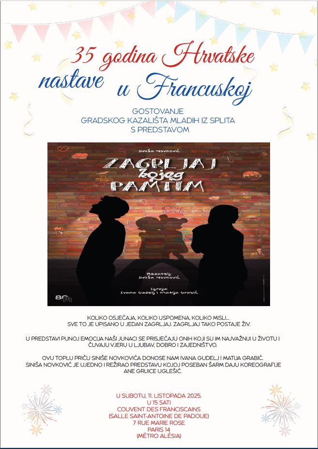 Avec un spectacle scolaire étoffé, une pièce de théâtre du Théâtre municipal des jeunes de Split, une collation accompagnée d’un moment riche en convivialité et échanges, l’après-midi de festivités a été une belle réussite dont on se rappellera longtemps !